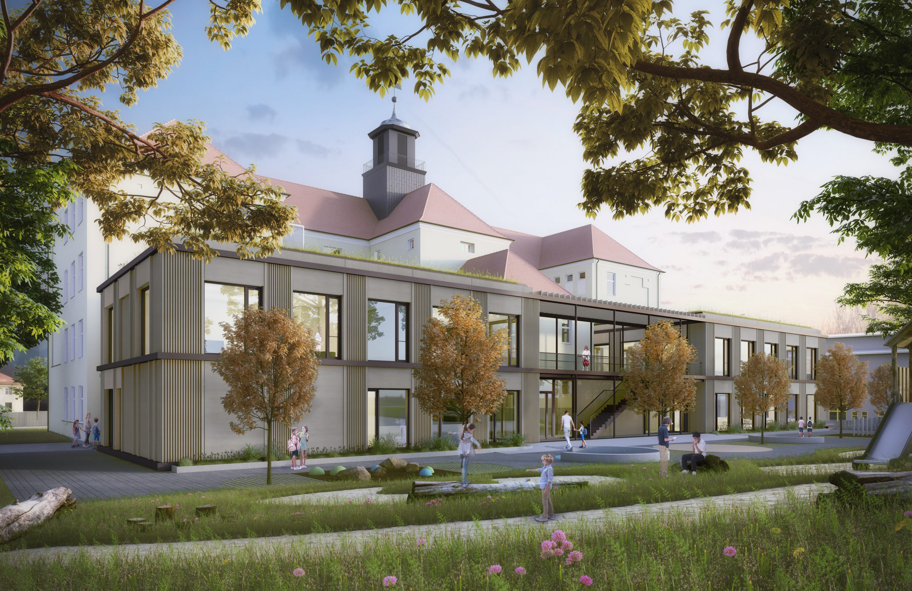 Für unser Projekt zur Erweiterung der Max-Josef-Schule in Amberg um Räume für Mensa und OGTS wurde die Baugenehmigung erteilt. Der Baubeginn für den ca. 8,0 Mio € teuren Neubau in Holz-/ Betonhybridbauweise ist für November 2025 vorgesehen.