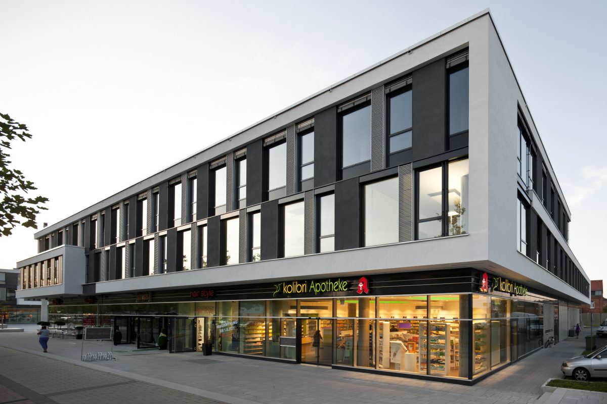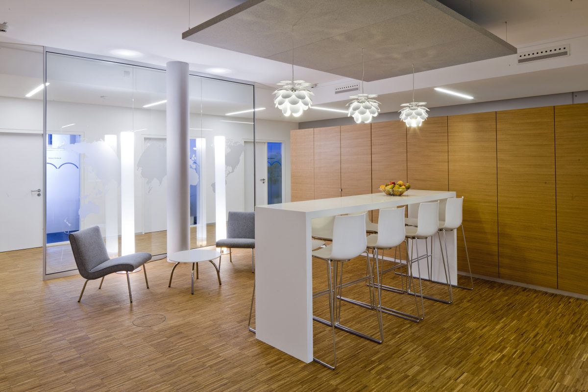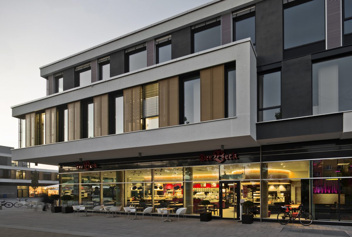 Das Büro- und Geschäftshaus Campus Röthelheimpark befindet sich im Zentrum des neu geschaffenen Röthelheimparks in Erlangen. Der Baukörper fasst mit seiner Form das südliche Ende des den ganzen Park durchziehenden Grünstreifens und reagiert rückseitig mit der Ausbildung der Hofsituation angemessen auf die angrenzende Wohnbebauung. Im Untergeschoss befindet sich eine Tiefgarage mit 165 Stellplätzen. Verschiedene Einzelhandelsnutzungen vom Lebensmittelvollsortimenter über einen Drogeriemarkt bis hin zu gastronomischen Einrichtungen bilden den Schwerpunkt der Versorgungsinfrastruktur der angrenzenden Wohngebiete. Im 1. und 2. Obergeschoss stehen auf ca. 6.850 m² moderne Büroflächen zur Verfügung. Die Firma Nutricia GmbH ist ein Tochterunternehmen der Danone Gruppe und bietet als Hersteller für enterale Ernährung ein Komplettsortiment an Sondernahrungsmitteln an. Bedingt durch Wachstum und Änderung der internen Arbeitsabläufe entsprechen die Büroflächen im derzeitigen Zuschnitt mit vorwiegend Zellenstrukturen und einem Mangel an Kommunikationsbereichen nicht mehr den Erfordernissen. Im durch Baum-Kappler Architekten geplanten Gebäude des Campus Röthelheimpark in Erlangen entstanden ca. 2.500m² moderne Büroflächen als Open Space. Ein multifunktionaler Konferenzbereich bildet das Herzstück der Mietung. Die einzelnen Nutzungseinheiten wurden individuell auf die Bedürfnisse der Abteilungen und deren Arbeitsweisen zugeschnitten.