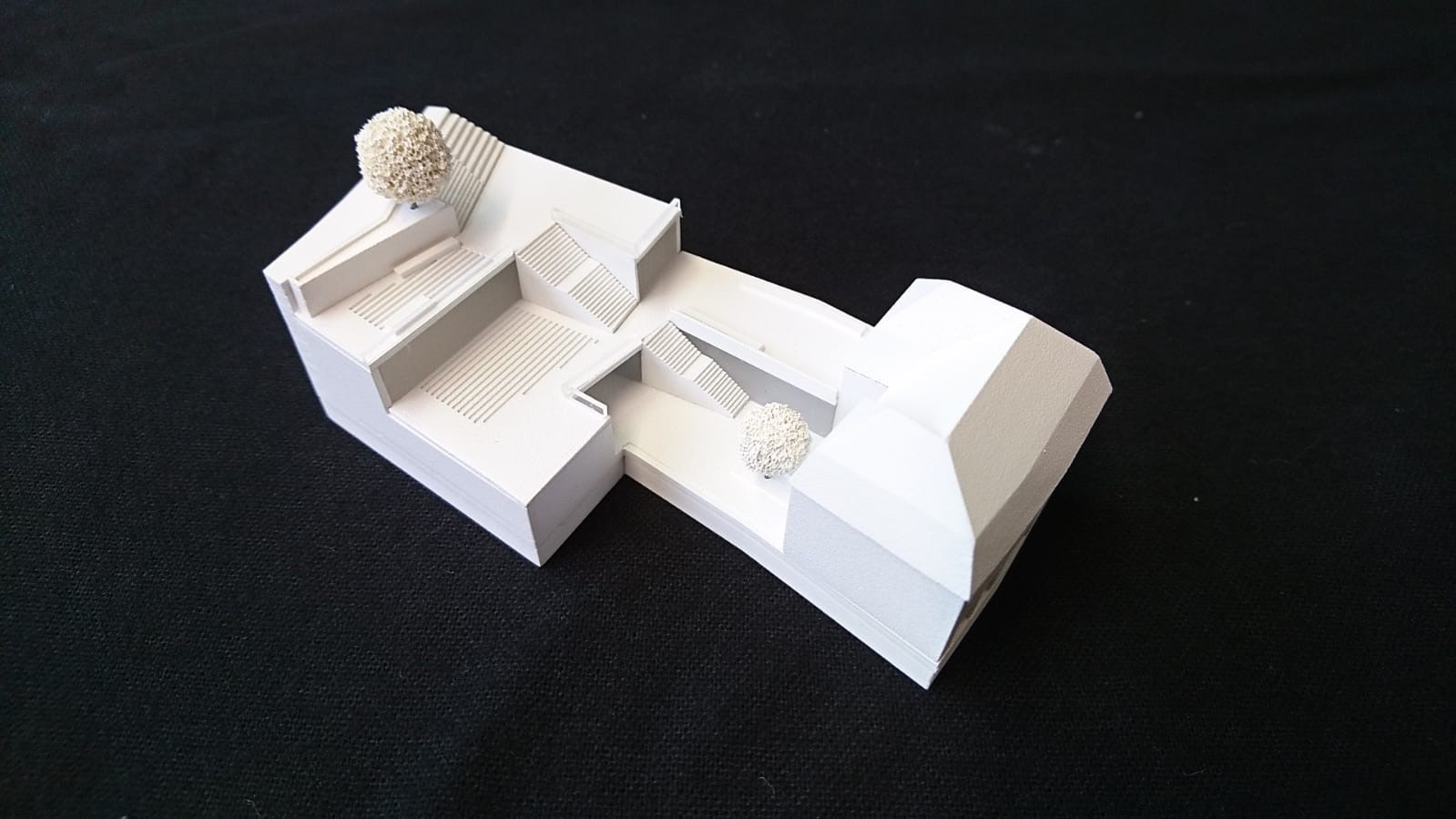 Der Bestandsbau erhält seinen ursprünglichen zentrierten Eingang zurück und dient somit als Tor der neuen städtebaulichen Achse. Die einladende Geste durch den Blick auf die Treppenanlage macht die öffentliche Zugänglichkeit deutlich. Der neue Anbau schließt im Erdgeschoss an den Bestand an und definiert sich als Terrassenarchitektur mit klaren Linien, durch die er neben dem Altbau bestehen kann, ohne mit ihm in Konkurrenz zu stehen. Das Konzept der Verbindung von Schloss und Marktplatz wird durch eine skulpturale Treppe betont und auf den horizontalen Ebenen der öffentlichen und halböffentlichen Dachterrassen bespielt. Durch Blickbeziehungen, fließende Räume und einen starken Bezug zum bespielten Innenhof, definiert sich ein neuer Treffpunkt für die Bürger Lichtenfels und ein Ort der Begegnung.